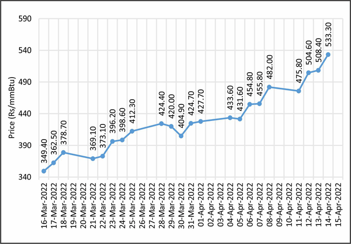 Natural Gas Spot price at multi commodity Exchange of India Ltd